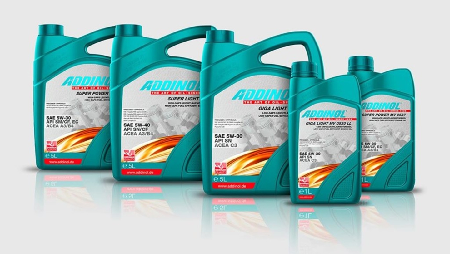 ADDINOL chuyên dùng cho động cơ – Hơn 150 sản phẩm các loại Hàng loạt các sản phẩm của dầu nhờn ADDINOL chuyên dùng cho động cơ và cơ cấu truyền lực đạt tiêu chuẩn quốc tế cao nhất. Có hơn 150 sản phẩm của công ty đạt tiêu chuẩn hàng đầu OEM về chất lượng chuyên dùng cho các loại động cơ mô tô, ô tô và phương tiện chuyên chở, trong đó có nhiều khách hàng là các hãng sản xuất hàng đầu như Mercedes Benz, tập đoàn Volkswagen, BMW, MAN, Porsche, Scania, Volvo và MTU. Hơn thế nữa, ADDINOL còn cung cấp dầu để chạy các động cơ dùng nhiên liệu dầu, chạy các thiết bị sản xuất khí gas. Dầu do ADDINOL sản xuất đã được nhiều nhà chế tạo động cơ nổi tiếng như MAN, MTU, MWM và GE Jebacher thẩm định về chất lượng.