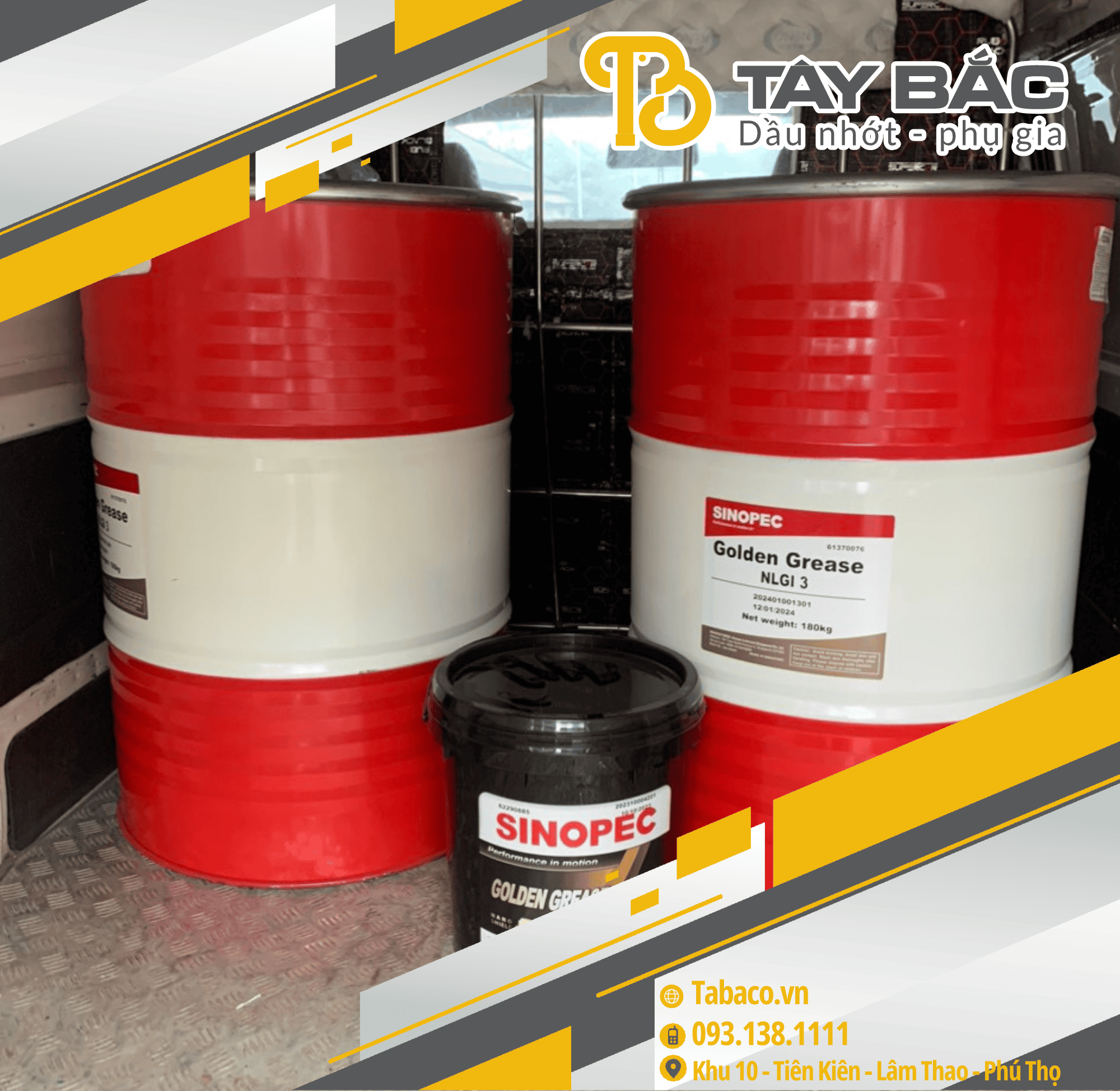 - Sinopec Golden NLGI 3 dùng để bôi trơn bảo vệ các thiết bị tốc độ thấp như máy xây dựng, máy nông nghiệp, đồ gốm (chẳng hạn như máy đánh bóng, ổ trục truyền động), luyện kim (Bàn lăn vận chuyển), Ô tô (khung, trục bánh xe), và các loại máy móc thông thường,...